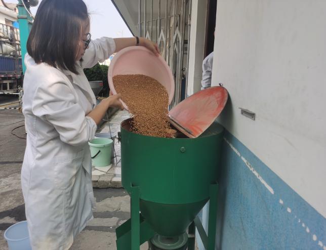 為確保政府儲備糧油輪換任務(wù)按時、按質(zhì)、按量的完成,市糧儲公司一線干部職工每天天剛拂曉就來到糧食收、出作業(yè)現(xiàn)場,開啟一天緊張有序的工作。質(zhì)檢員作為糧食質(zhì)量安全的守門員,他們從扦樣、分樣、送樣到檢測,從糧食常規(guī)質(zhì)量指標、儲存品質(zhì)指標到食品安全指標的檢測均嚴格按操作流程,高質(zhì)量完成每一份樣品、每一項指標的檢測任務(wù),保障了入庫糧食質(zhì)量合格;倉儲管理員堅守卸糧現(xiàn)場,嚴格抽查入庫糧食質(zhì)量,盡管汗