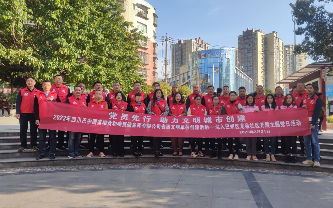 為充分發(fā)揮黨員先鋒模范作用,弘揚(yáng)志愿精神,助力全國文明城市創(chuàng)建,3月21日,糧儲公司黨總支走進(jìn)巴州區(qū)龍泉社區(qū)開展“黨員先行·助力文明城市創(chuàng)建”主題黨日活動。